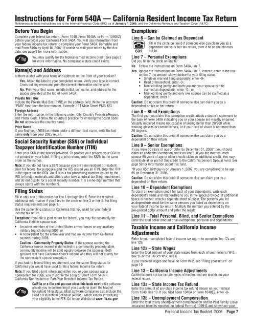 2006 Instructions For Form 540a California Franchise Tax Board